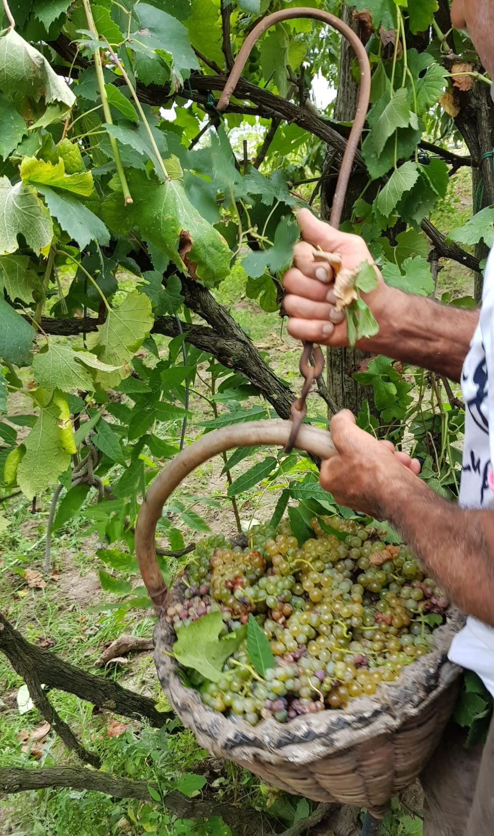 Durante la vendemmia si usa una "fescina" cesto di vimini a punta che una volta pieno di grappoli raccolti rigorosamente a mano, viene calato tramite una corda fino ad arrivare sul terreno, data l'impossibilità di scendere e salire per scaricare l'uva una volta che l'operatore si trova a 10 metri da terra. Il suo peso e la velocità con cui scende gli permette di incunearsi nel terreno senza rovesciarsi, una volta lì un'altro operatore la svuota all'interno delle cassette e chi è sulla vigna può ritirarlo a se con la corda e riagganciarlo alla scala.